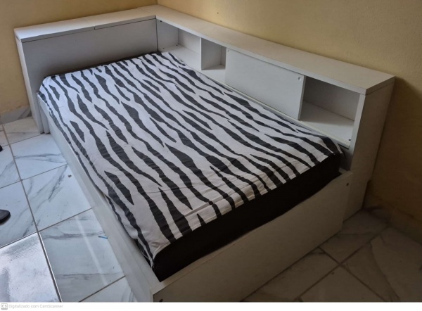 • Cama de madeira pintada de branco com estantes laterais medindo 230 cm por 80 cm necessita de restauros, não pode ser enviado pelos correios, retirada em local térreo em condominio na Av das Américas altura do Riviera del Fiori.