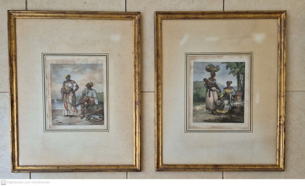 • Par de reproduções de gravura de Debret medida interna 33 cm por 30 cm e total emolduradas 75 cm por 60 cm, apresenta manchas e sinais do tempo, retirada em local térreo em condominio na Av das Américas altura do Riviera del Fiori.