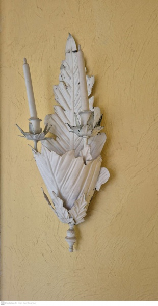 • Par de luminárias em ferro batido medindo 65 cm de altura por 30 cm por 13 cm