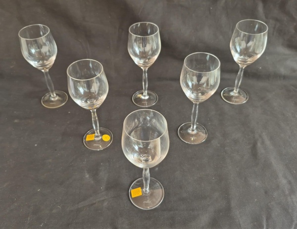 • Cristais Strauss, seis taças para licor medindo 14 cm de altura por 5 cm de diâmetro.