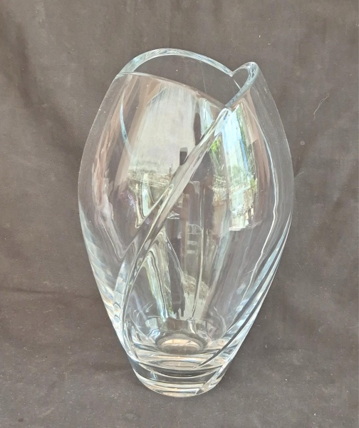 • Vaso em cristal moldado em tulipa estilizada medindo 26 cm de altura por 16 cm de diâmetro.