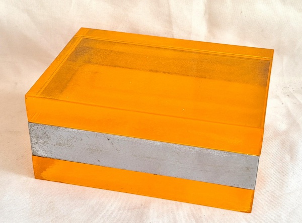 • Vintage, caixa para pequenos guardados em placas de acrílico e metal medindo 8 cm de altura por 17 cm por 12 cm apresenta sinais do tempo.