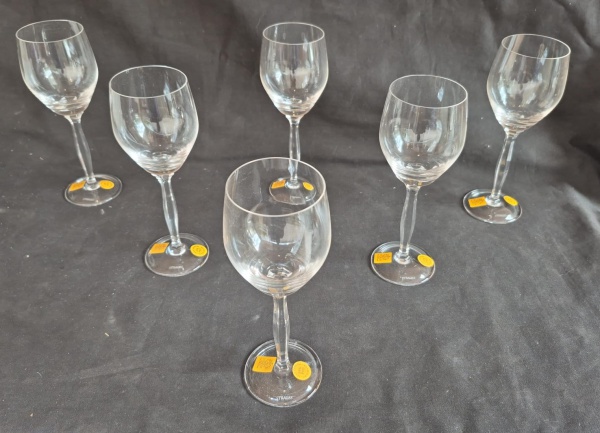 • Cristais Strauss, seis calices para água medindo 20 cm de altura por 7 cm de diâmetro.
