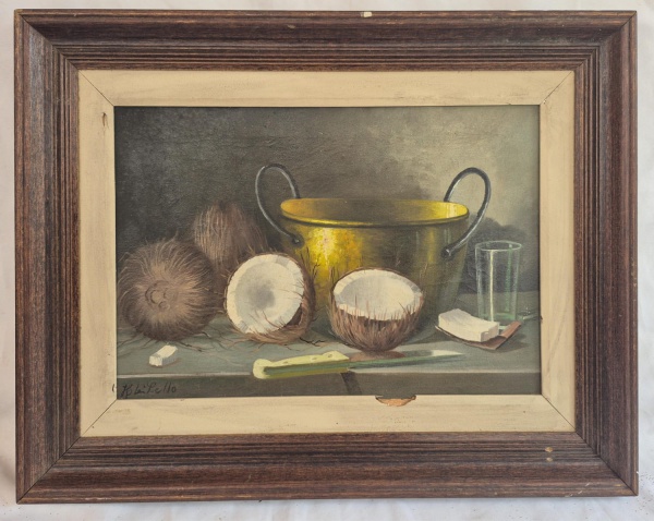 • Henrique di Lello, óleo sobbre tela "Natureza Morta" medida interna 31 cm por 45 cm e total medindo 46 cm por 61 cm, apresenta faltas na moldura por ataque de cupins.