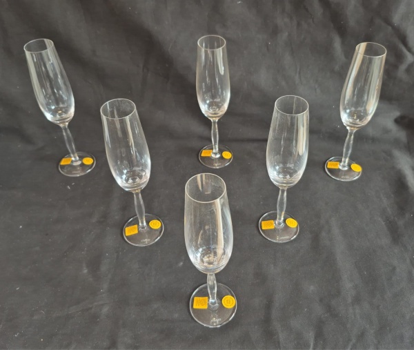 • Cristais Strauss, seis flutes medindo 23 cm de altura por 5,5 cm de diâmetro