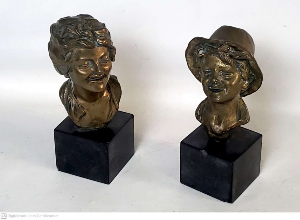 • Gaetano Chiaramonte (Nápoles Século XIX-XX) duas esculturas em bronze uma de busto de figura feminina com 12 cm de altura e outra de jovem medindo 11 cm de altura. peça pertenceu a coleção Joseph e Ottilia Cristescu.