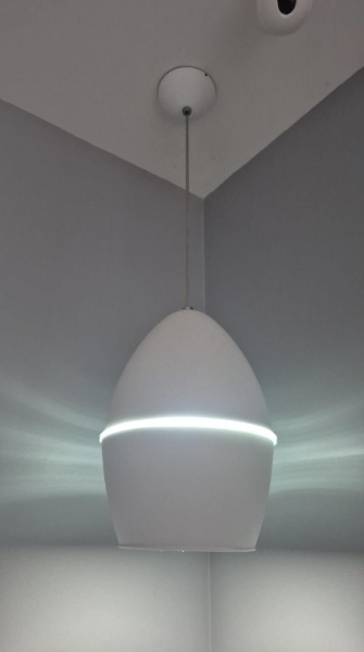 • Luminária de teto em chapa pintada de branco medindo 34 cm de altura por 26 cm e total de 90 cm.