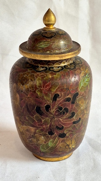 • Antigo vaso closonet com tampa medindo 14 cm de altura por 7,5 cm de diâmetro.