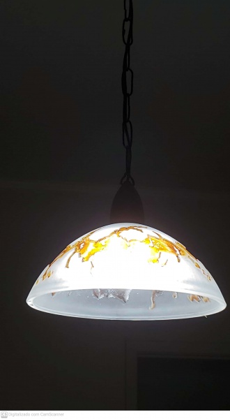 • Luminária de teto em pasta de vidro  medindo a cúpula 23 cm de altura total  por 30 cm de diâmetro no bojo da cúpula,  em perfeito estado de conservação, pertenceu a coleção Joseph e Ottília Cristescu.