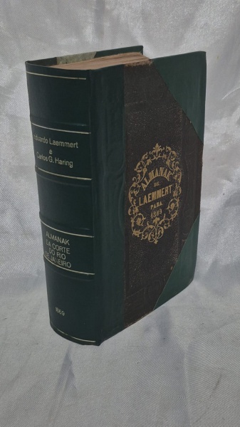• Livro século XIX Almanak administrativo Mercantil e Industrial  para o Anno de 1869, impresso no Rio de Janeiro por Eduardo e Henrique Laemmert, medindo 23 cm por 14 cm.